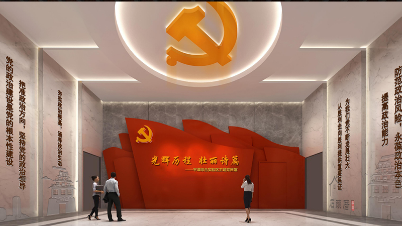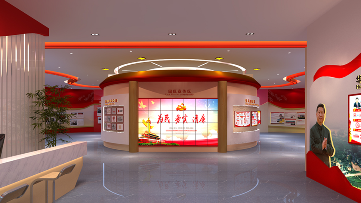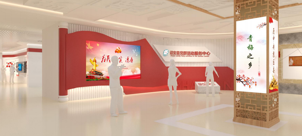 诏安古称丹诏,集山海为一体,融人文于一炉。道光至光绪年间沈锦洲等书画名家形成诏安画派,“兼工带写,清丽雅逸”;数百年来名家辈出,佳作迭现,光彩夺目,是闻名遐迩的“书画艺术之乡”。我们的设计取诏安人文之神和书画之韵,将整个党建展厅充分体现诏安特色的同时又尽可能的做到的简洁实用。