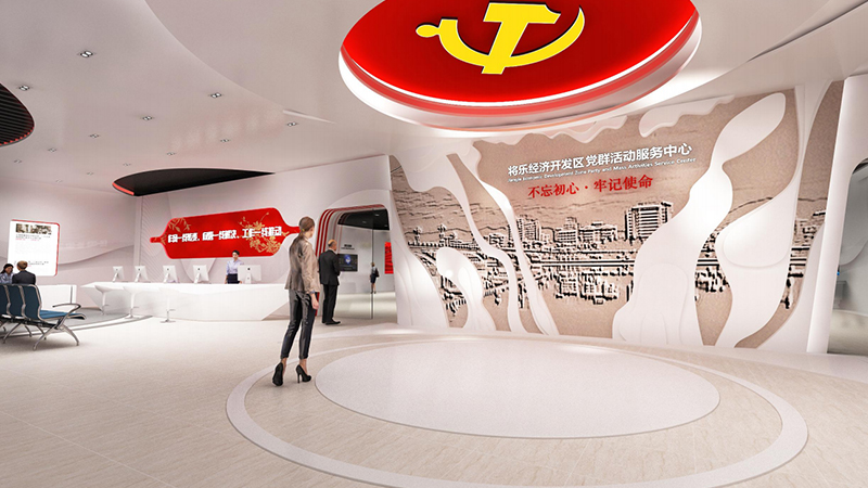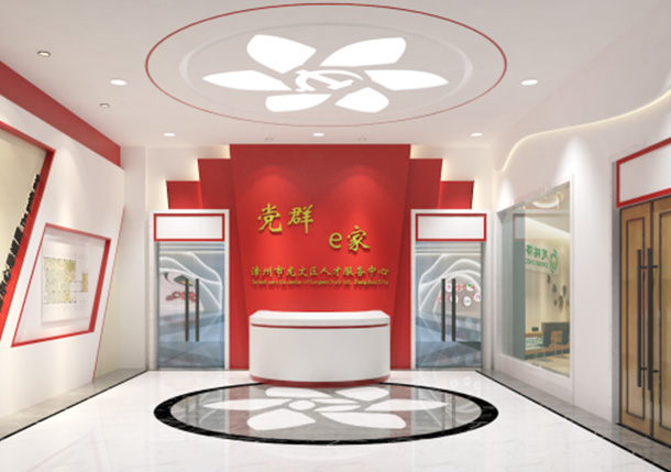 龙文区党群活动服务中心面积约 835 ㎡,根据目标客户的党群服务属性,我们需要将空间处理的更加具备展示性、功能性、实用性与教育性。同时搭建互联平台,以“互联网+党建”的设计思路,让中心具备【智慧党群】的互联网属性。