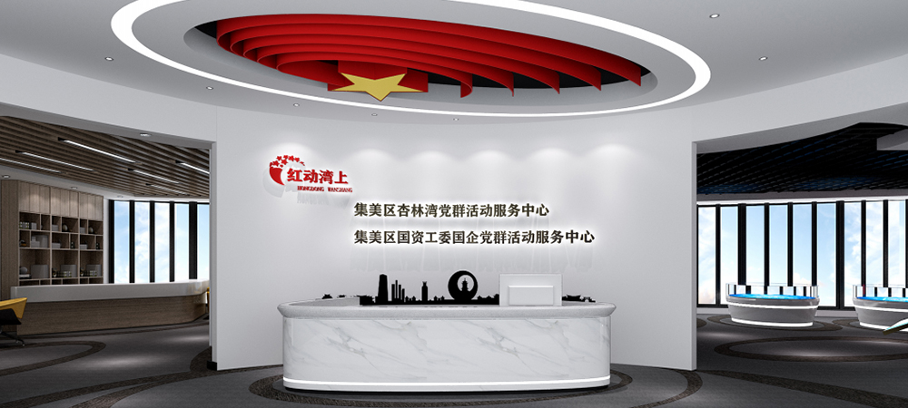 集美区委财政国资工委党群服务中心位于杏林湾地标建筑诚毅国际商务中心12号楼23层,由集美区委财政国资工委牵头,杏林建发代建,结合杏林湾商务营运中心楼宇集中的特点,打造综合性楼宇党群活动服务中心。党群中心提供联络联谊、办事服务、教育培训、展示交流、健康文化等功能于一身,融合党建引领,涉企服务、统战、群团等“一站式”服务,具有政治、服务、资源共享的“红色阵地”。
